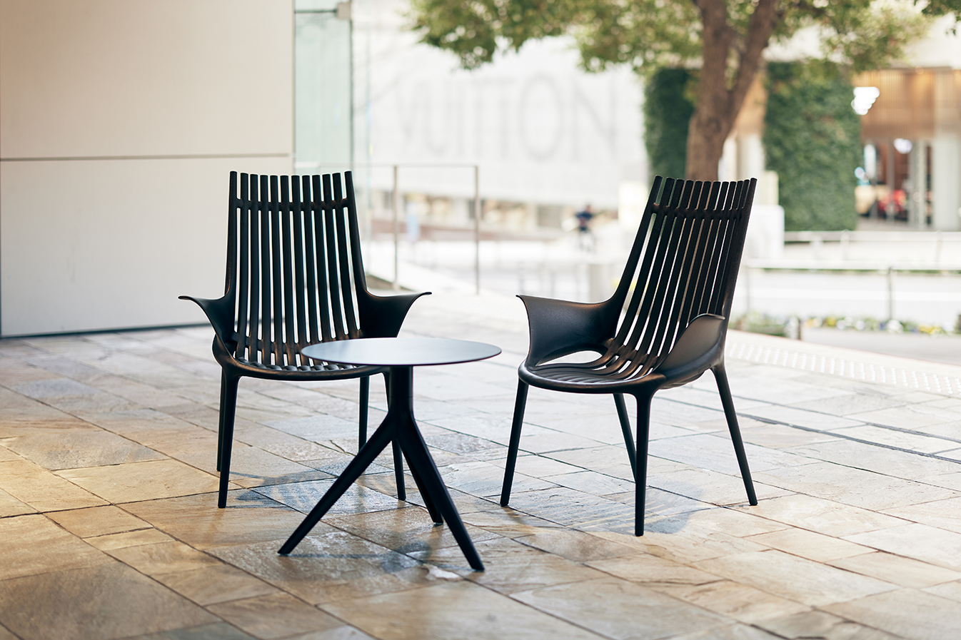 ベストセラーのフォトジェニックなチェアは、都心のテラスに彩りを添えます。
